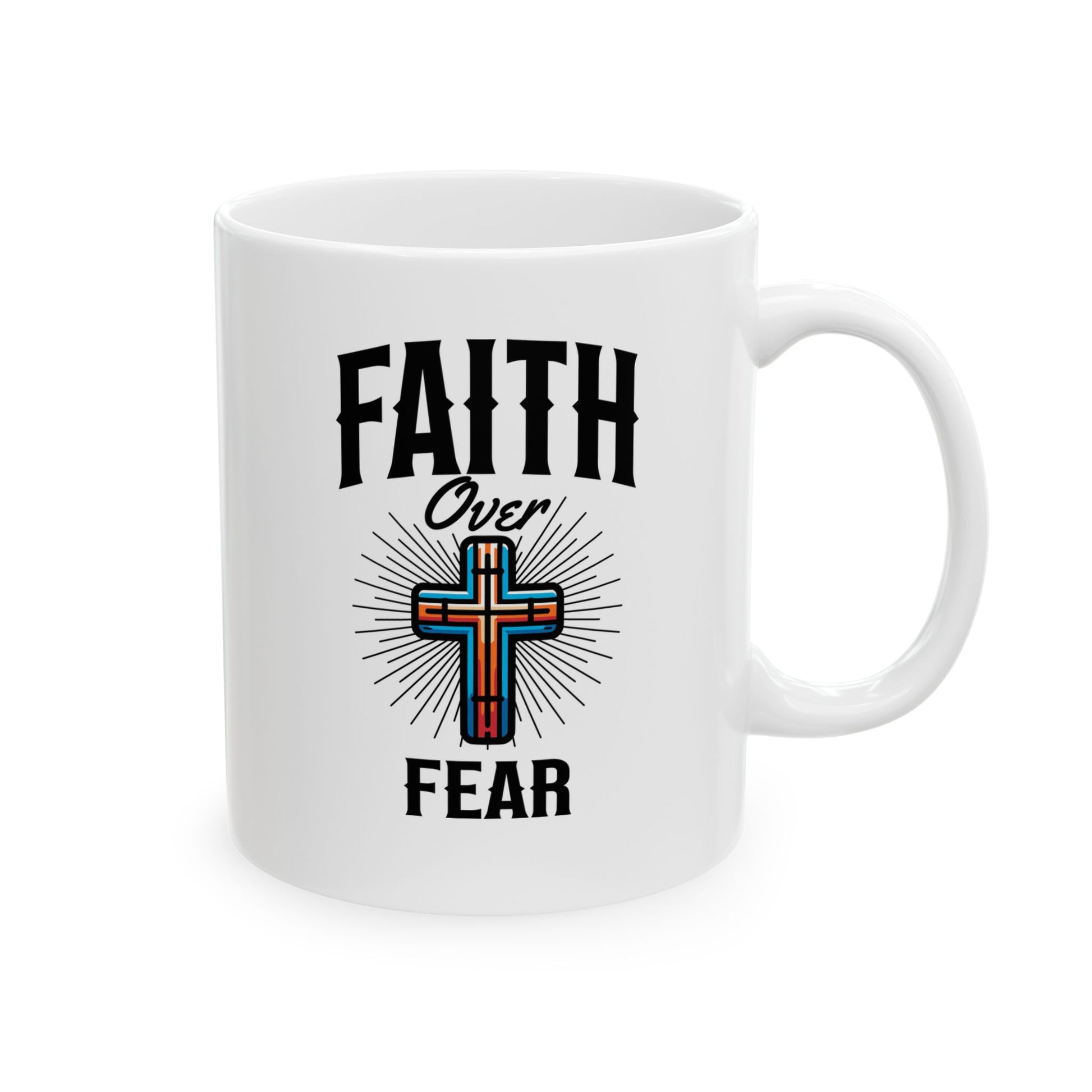 Faith Over Fear 11oz White Coffee Mug, perfect for a Mom or Dad, is a great gift for home or office use. The design exudes positivity and strength, perfect for starting your day with a boost of faith. Ideal for those looking for daily motivation and inspiration, this mug is relevant for Mother's Day, Father's Day, birthdays, or just because gifts.